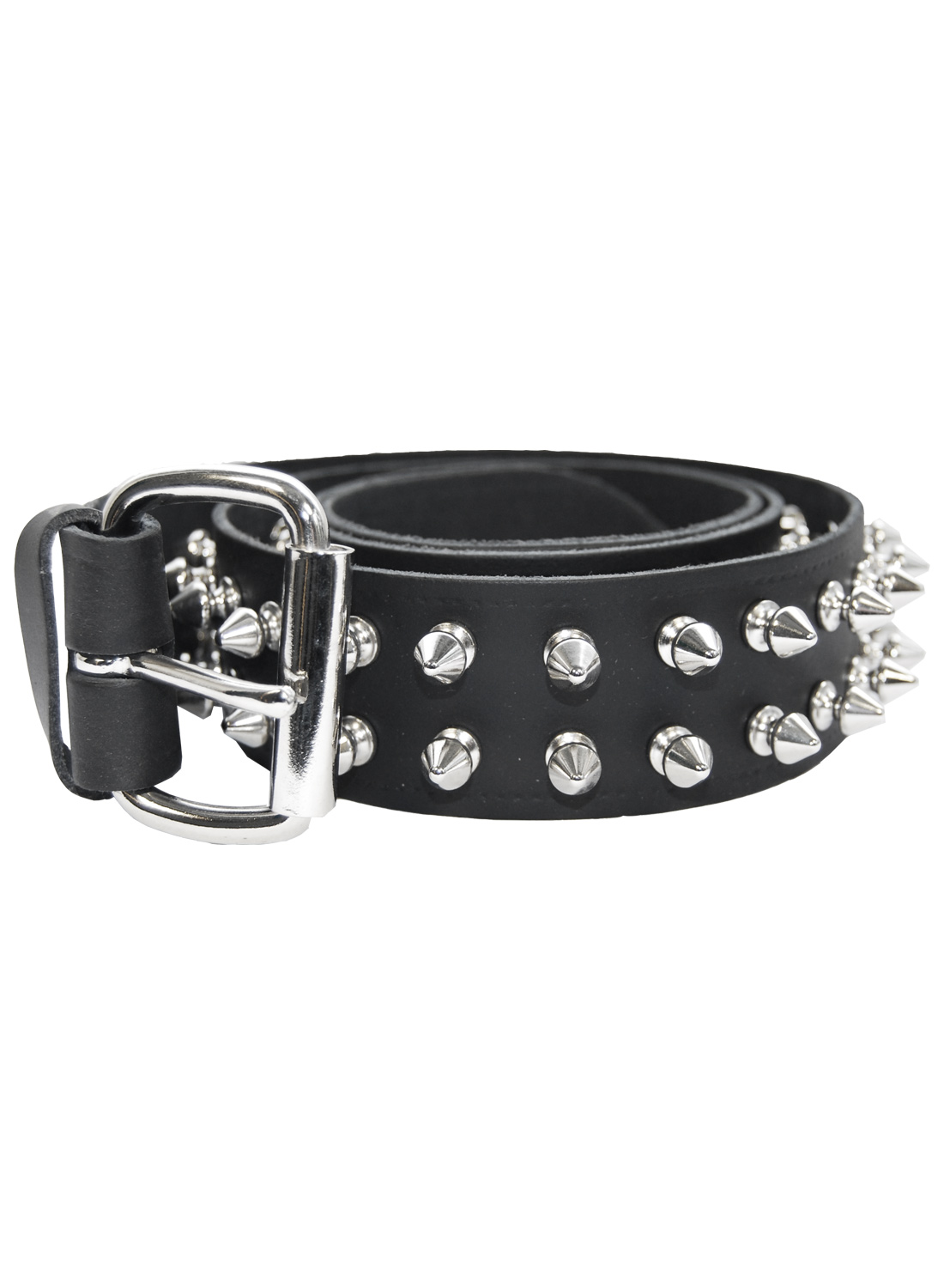 2 Row Spike Studbelt Black är ett 2- radigt spik-nitbälte i äkta läder med avtagbart spänne. Bredd: 3,8 cm. Detta svarta nitbälte kommer från Randomizer och tillverkas i England.