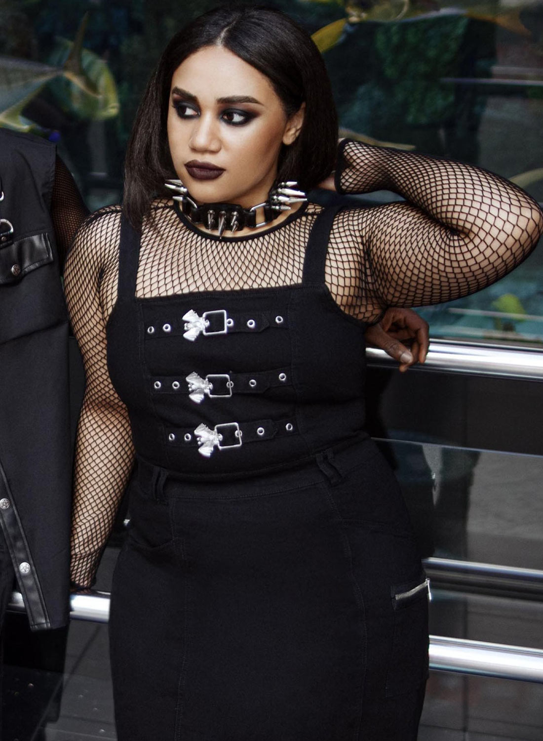 ‘Dark Shadows’-klänningen är gjord av supermjukt stretchmaterial för en smickrande men ändå bekväm passform – med spännen prydda med fladdermöss, dragkedja, axelband och dragkedja baktill. Lätt att klä upp eller ner beroende på humör/måne.