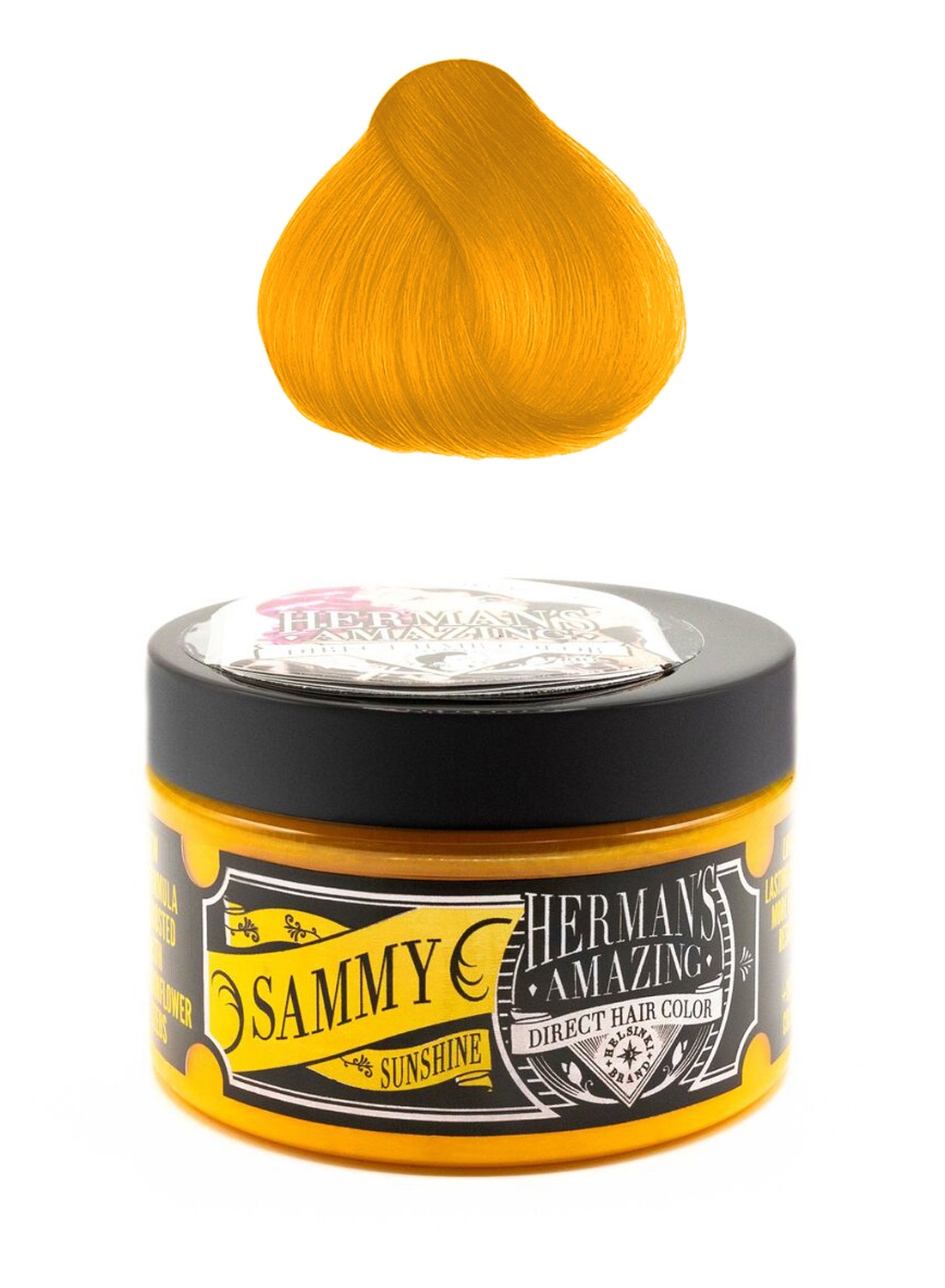 Herman’s Amazing Sammy Sunshine Hårfärg är en semi-permanent hårtoning, som ger en sol gul färg.