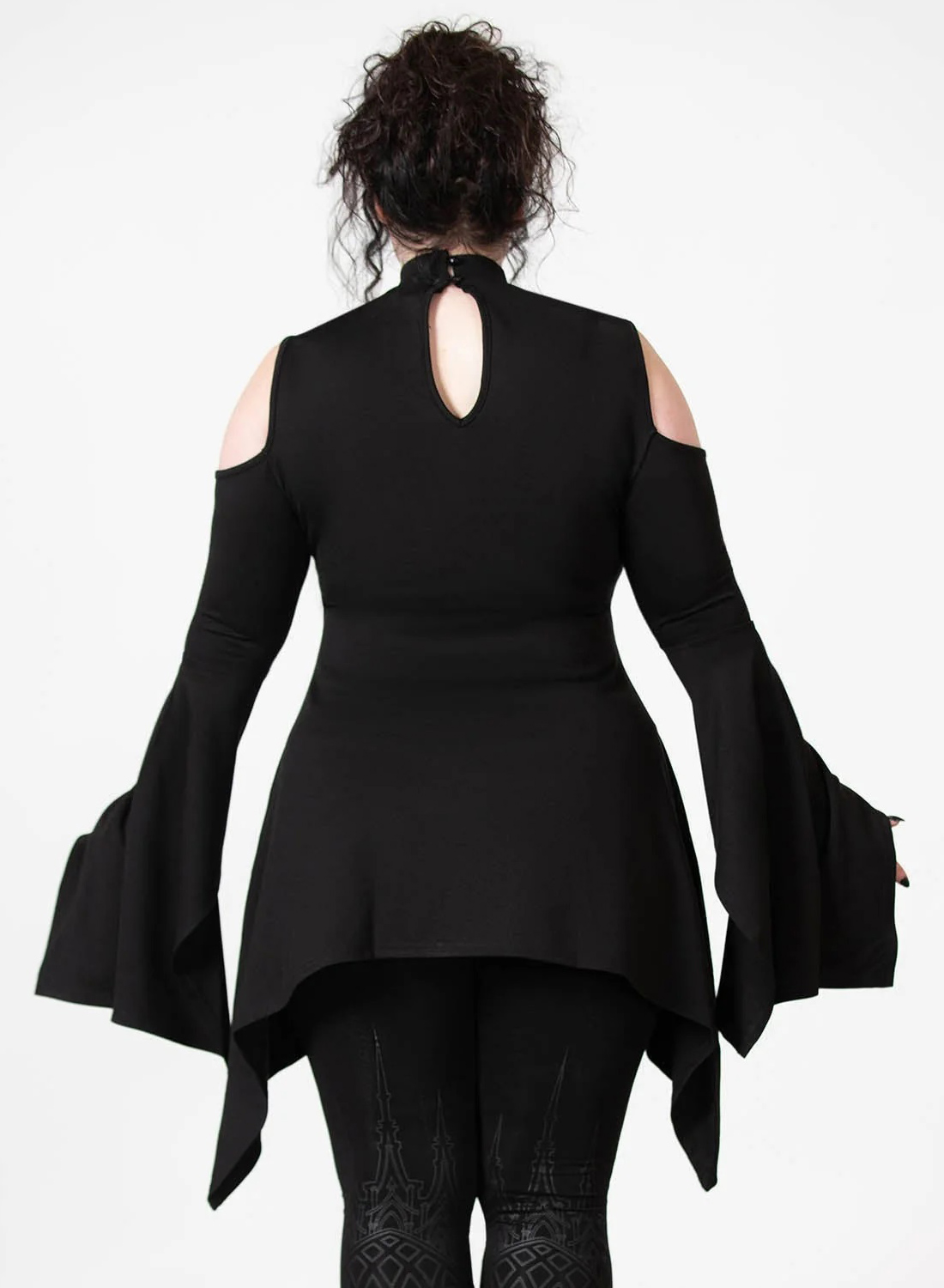 Moonshine Cold Shoulder Top är en söt måste ha gotisk topp från Killstar.