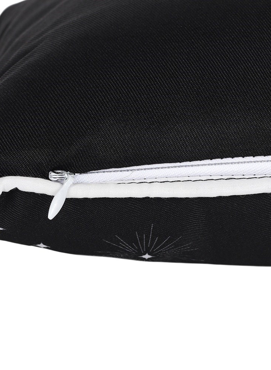 Denna härliga fyrkantiga tygkudde är svart med en vit pentagramdesign. Dragkedja så insidan kan tas bort.