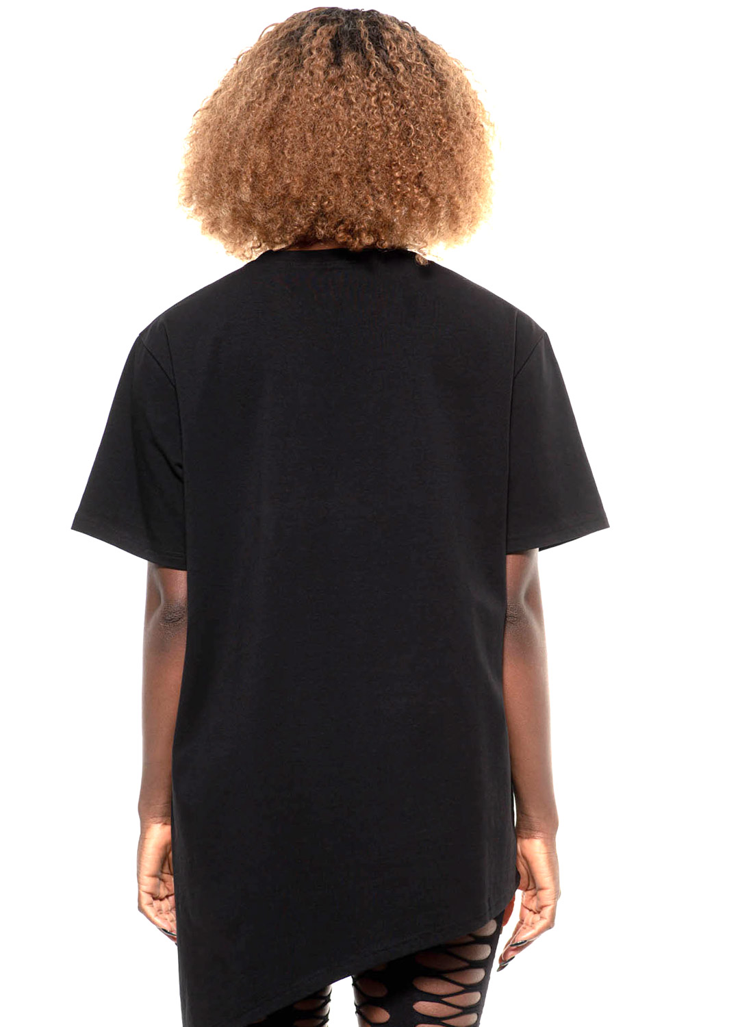 Klassisk passform t-shirt med lite extra längd – i en överlägsen bomullsjersey med en sliten design och asymmetrisk fåll.